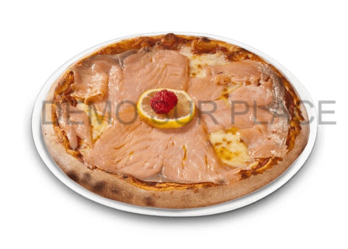 Crème, saumon, mozzarella, citron, roquette.