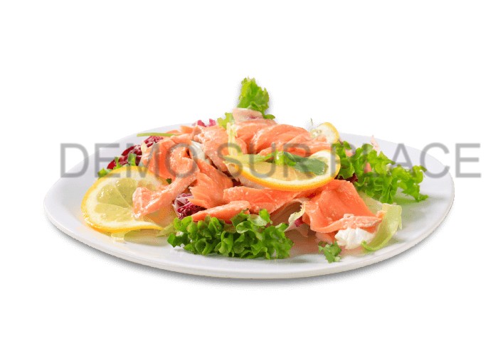 Salade verte, avocat, carottes râpées, chèvre chaud, saumon fumé, citron.